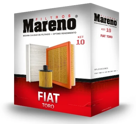 Kit de filtros para Fiat Toro y Jeep Renegade, diseñado para el mantenimiento del sistema de aire y otros componentes del motor, sin incluir el filtro de combustible. Este combo de filtros es ideal para mantener el óptimo rendimiento del vehículo.